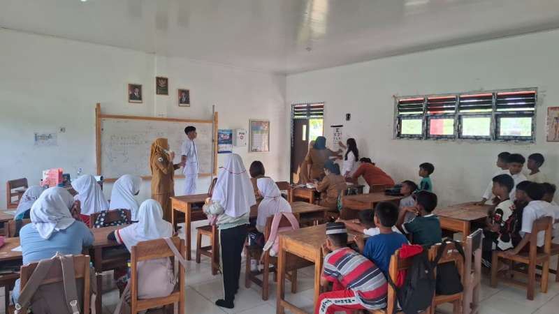 Petugas melakukan pemeriksaan fisik secara teliti untuk mendeteksi dini penyakit kulit menular menahun ini. Langkah preventif ini sangat penting untuk memastikan tidak ada siswa yang terhambat aktivitas belajarnya akibat gangguan kesehatan kulit yang sebenarnya bisa dicegah sejak dini.